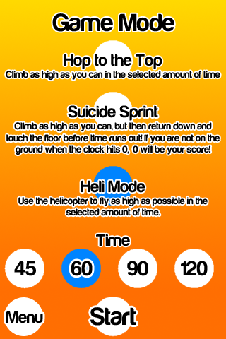 | Regular mode - jump as many platforms as you can in the selected time |  |  |